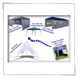 Rundum verschließbar, 6 Seitenwände mit Fenster, 2 Seitenwände mit Reißverschlusstür
